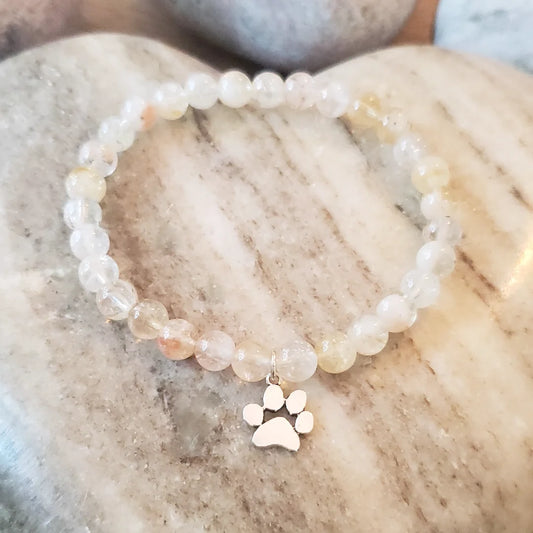 Citrine bracelet with sterling silver paw charm